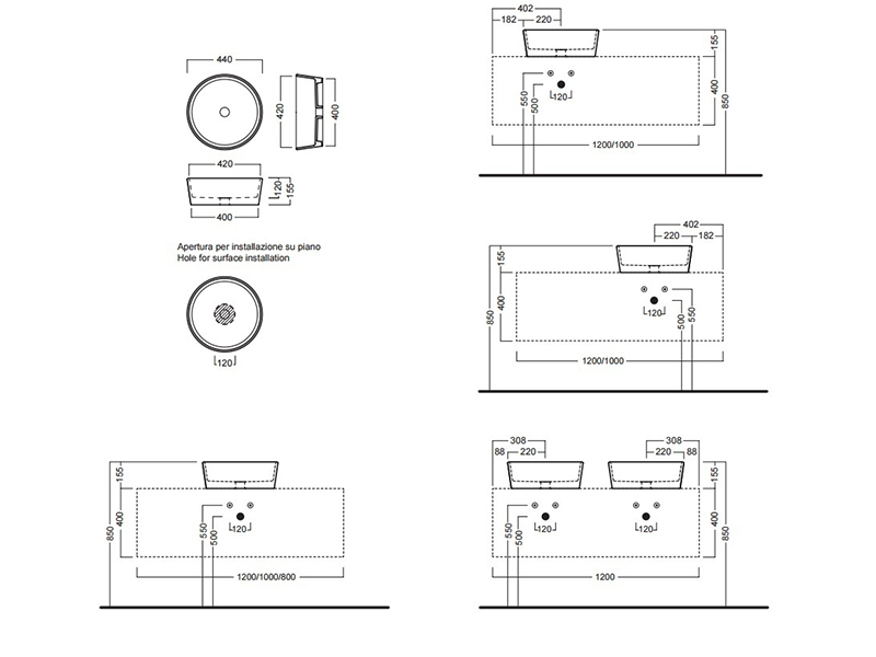 | Отверстия под смеситель | без отверстий |