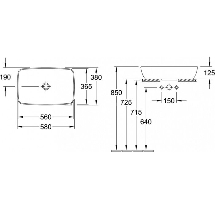 Раковины-чаши в наше время пользуются большой популярность и разрешают максимально разумно использовать пространство ванной комнаты. Раковина Villeroy & Boch Artis 4172 58 01 alpin является модной моделью в этой категории и дает возможность не только удобно сделать все гигиенические моменты, но и делает интерьер помещения более красивым. Функциональности этому умывальнику прибавляет прямоугольная форма и практическое решение выполнения чаши без отверстий под смеситель. Материал выполнения - фарфор, ценится за свою износостойкость, не требует серьезных усилий по уходу и великолепно сохраняет весь цветовой спектр. Чаша устанавливается просто - к столешнице и чудесно сочетается с другими товарами бренда Villeroy & Boch, а гарантия на этот экземпляр составляет 4 года. Изделие, как и все представители коллекции Artis, реализовано в изысканном виде. Плавные линии, элегантные формы, правильные пропорции - все это делает данную модель прекрасным решением для любителей комфорта и роскоши. Умывальник производится в Германии и реализован в размерах: высота 12.5 см, ширина 58 см., глубина 38 см., что так же нужно назвать большим плюсом для тех, кто планирует разумно распорядиться каждым сантиметром при планировке душевого помещения.