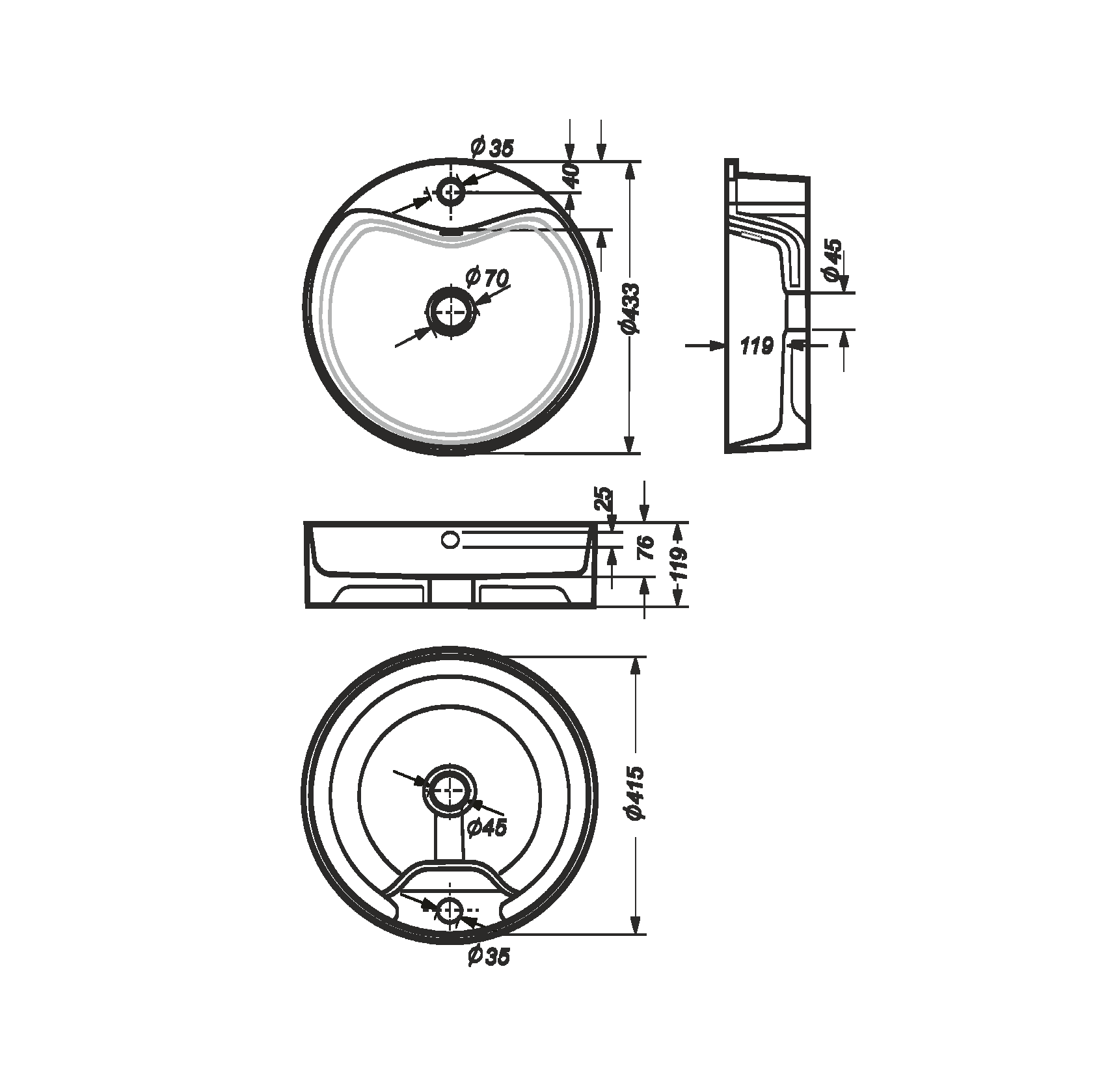 | Отверстия под смеситель | на 1 отверстие |
