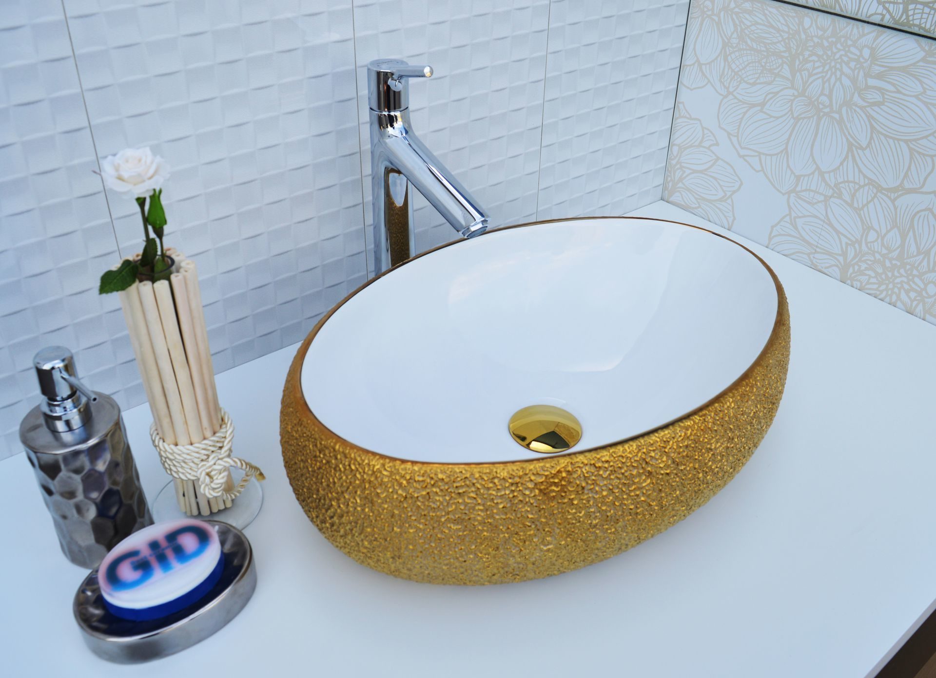 Настольные раковины сейчас высоко ценятся и разрешают предельно эффективно использовать пространство ванной комнаты. Раковина накладная 48см Gid Nc433 белый/золотой является популярной моделью в этом классе и дает возможность не только комфортно выполнять все гигиенические моменты, но и делает интерьер комнаты более гармоничным. Дополнительного удобства этому умывальнику прибавляет овальная форма и удачное решение выполнения чаши без отверстий под смеситель. Материал выполнения - керамика, почитается за свою надежность, не требует дополнительных усилий по уходу и превосходно сохраняет насыщенность цвета. Чаша располагается легко - к столешнице и невероятно красиво сочетается с другими товарами бренда GID, а гарантия на умывальник действует 5 лет. Изделие, как и все представители коллекции , произведено в необычном стиле. Утонченные изгибы, элегантные формы, правильные пропорции - все это делает данную модель хорошим вариантом для ценителей комфорта и красоты. Умывальник производится в Италии и сделан в размерах: высота 16 см, ширина 34 см., глубина 34 см., что так же нужно назвать дополнительным преимуществом для тех, кто настроен правильно задействовать все пространство при планировке своего помещения.