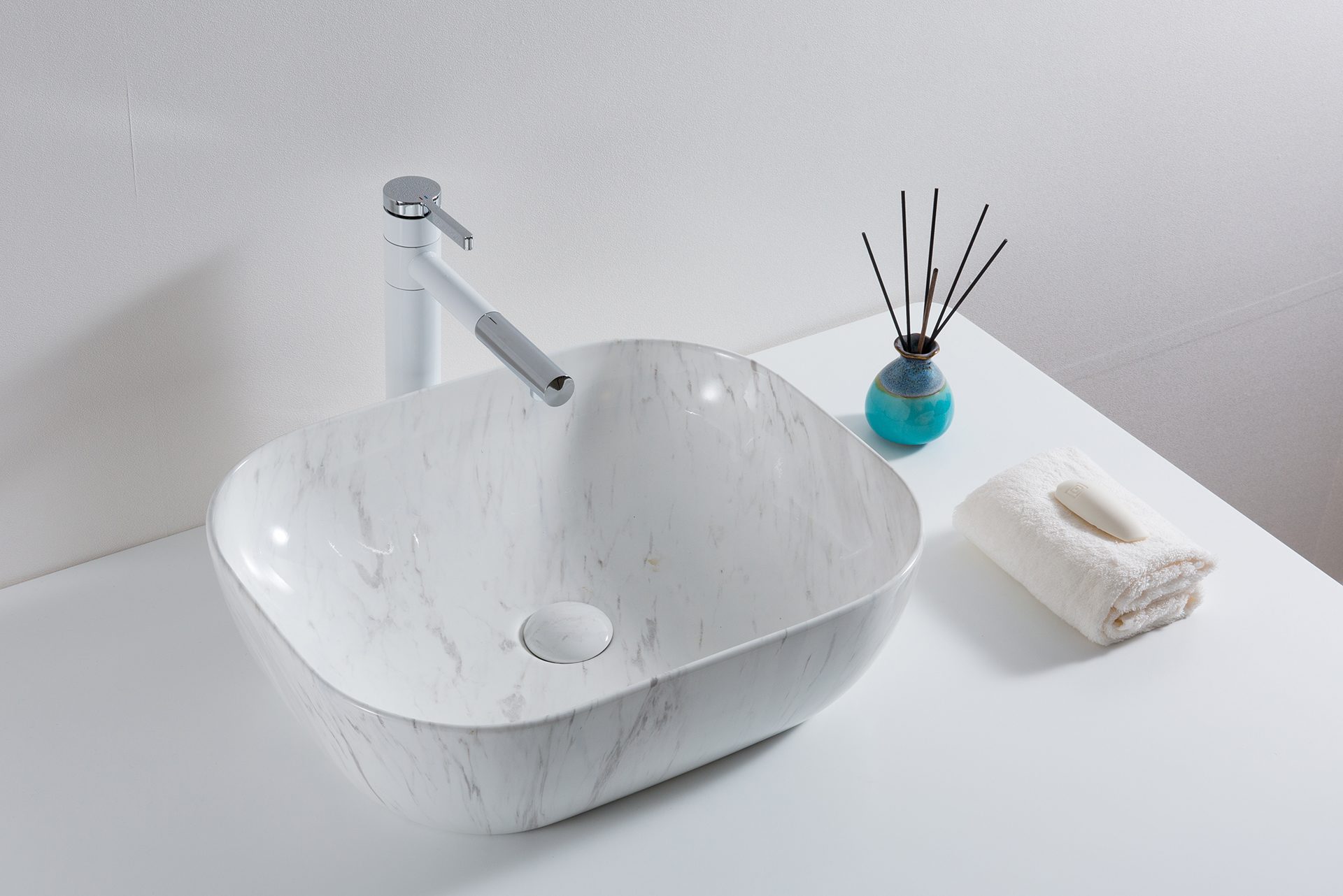Настольные раковины сейчас пользуются большой популярность и дают возможность максимально эффективно использовать пространство ванной комнаты. Раковина накладная 50см Gid K397D9 белый является популярной моделью в этой сфере и предоставляет возможность не только легко сделать все гигиенические моменты, но и делает интерьер санузла более красивым. Функциональности этому умывальнику прибавляет прямоугольная форма и удачное решение выполнения чаши без отверстий под кран. Материал выполнения - керамика, котируется за свою прочность, не требует больших усилий в обслуживании и превосходно сохраняет яркие краски в цвете. Чаша монтируется легко - к столешнице и отлично гармонирует с различными товарами бренда GID, а гарантия на этот экземпляр составляет 5 лет. Изделие, как и все представители серии , выполнено в оригинальном виде. Ровные изгибы, мягкие формы, правильные пропорции - все это делает данную модель отличным вариантом для ценителей комфорта и красоты. Умывальник производится в Италии и сделан в размерах: высота 14 см, ширина 40 см., глубина 40 см., что тоже можно считать дополнительным плюсом для тех, кто стремится правильно распорядиться каждым сантиметром при планировке своего помещения.