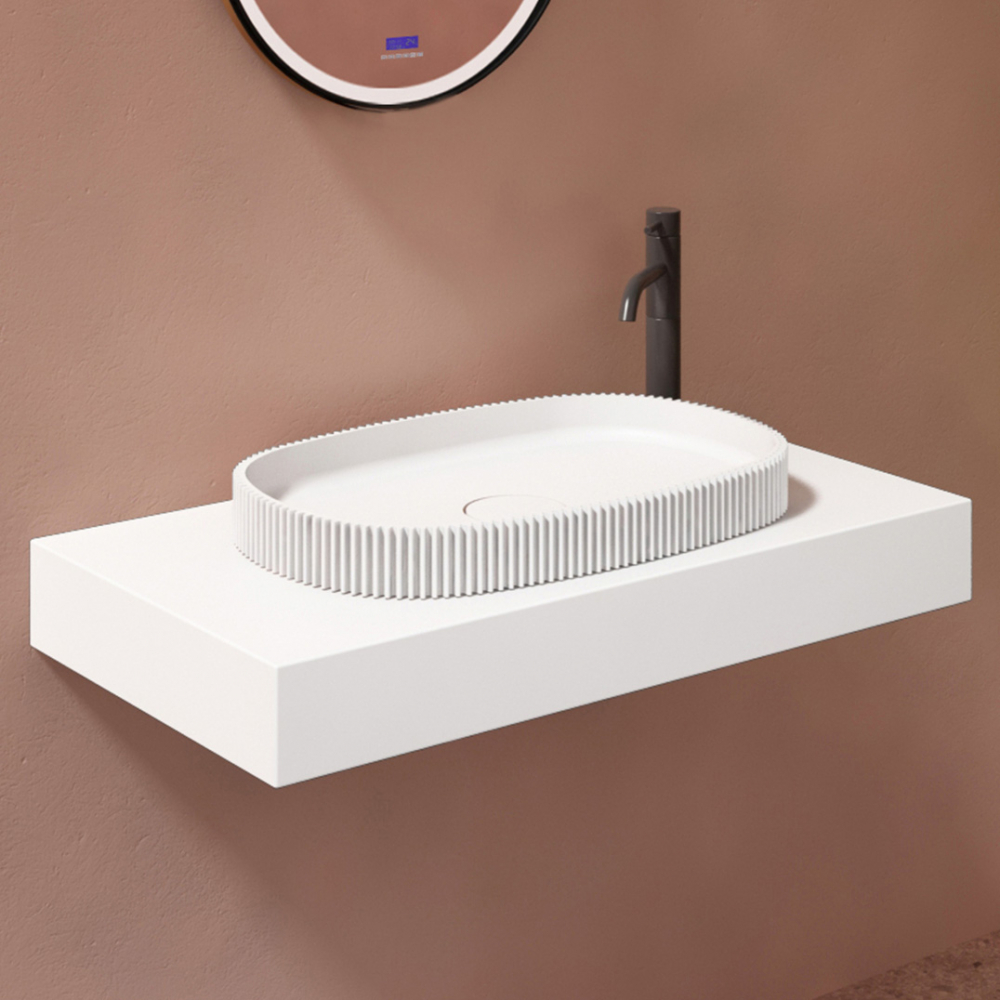 Настольные раковины сегодня высоко ценятся и позволяют очень выгодно использовать пространство ванной комнаты. Раковина накладная 55см ABBER Stein AS2601 белый является известной моделью в этом классе и дает возможность не только удобно сделать все гигиенические процедуры, но и делает интерьер комнаты более гармоничным. Функциональности этому умывальнику прибавляет овальная форма и практическое решение выполнения чаши без отверстий под смеситель. Материал изготовления - искусственный камень, ценится за свою надежность, не требует дополнительных усилий по уходу и превосходно сохраняет яркие краски в цвете. Чаша монтируется легко - к столешнице и чудесно гармонирует с другими товарами бренда Abber, а гарантия на нее работает 5 лет. Изделие, как и разные представители коллекции Stein, выполнено в изысканном виде. Ровные изгибы, округлые формы, правильные пропорции - все это делает такую модель прекрасным выбором для любителей комфорта и роскоши. Умывальник производится в Германии и сделан в размерах: высота 6 см, ширина 55 см., глубина 36 см., что совершенно точно нужно назвать дополнительным положительным мометном для тех, кто настроен разумно распорядиться каждым сантиметром при планировке душевого помещения.