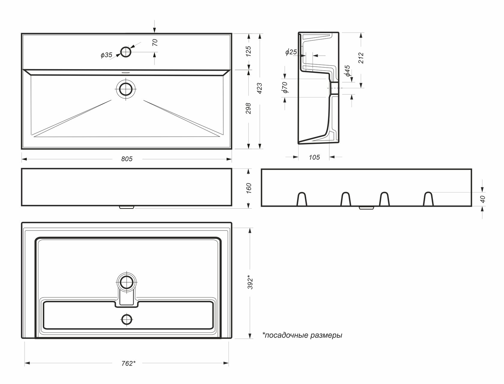 | Отверстия под смеситель | на 1 отверстие |