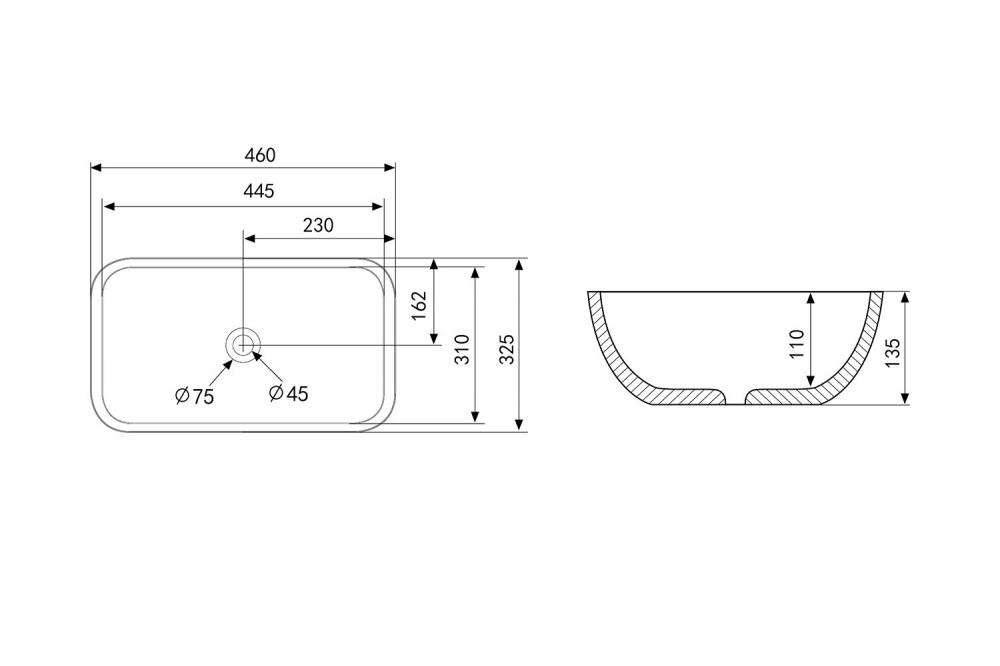 | Отверстия под смеситель | без отверстий |