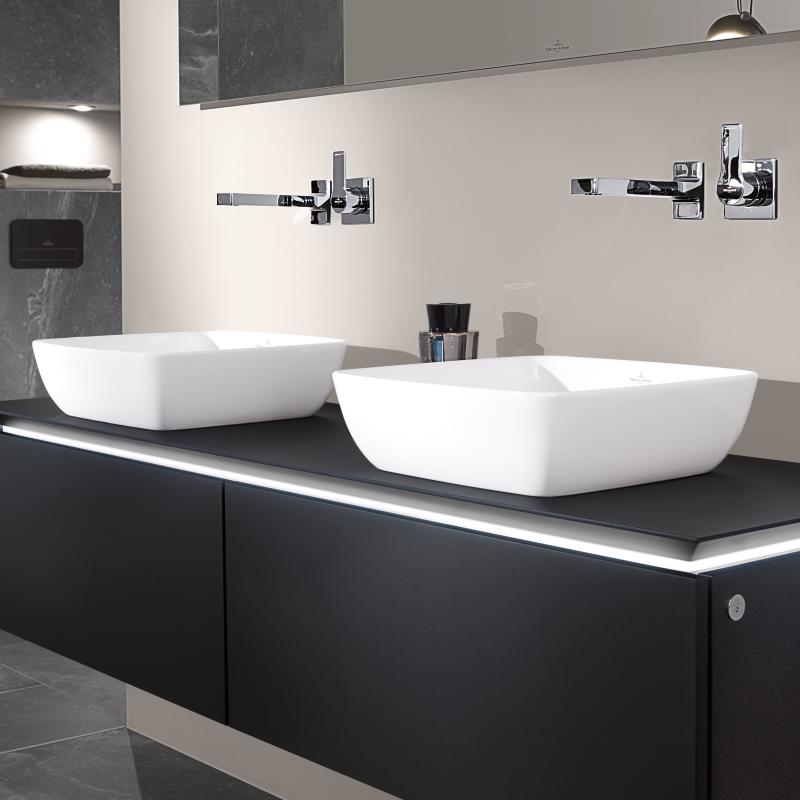Раковины-чаши сейчас имеют ошеломительный успех и разрешают очень разумно использовать пространство ванной комнаты. Рукомойник Villeroy & Boch Artis 4178 41R1 alpin ceramicplus является известной моделью в этой сфере и предоставляет возможность не только комфортно выполнять все гигиенические процедуры, но и делает интерьер санузла более гармоничным. Так же плюсов этому умывальнику прибавляет квадратная форма и практическое решение выполнения чаши без отверстий под смеситель. Материал производства - фарфор, высоко ценится за свою надежность, не требует серьезных усилий в обслуживании и великолепно сохраняет насыщенность цвета. Чаша располагается просто - к столешнице и невероятно красиво сочетается с другими товарами бренда Villeroy & Boch, а гарантия на нее работает 4 года. Изделие, как и другие представители серии Artis, реализовано в оригинальном ключе. Утонченные линии, элегантные формы, правильные параметры - все это делает такую модель прекрасным вариантом для почитателей комфорта и эстетики. Умывальник производится в Германии и сделан в размерах: высота 12.5 см, ширина 41 см., глубина 41 см., что совершенно точно является дополнительным положительным мометном для тех, кто стремится правильно задействовать все пространство при планировке душевого помещения.
