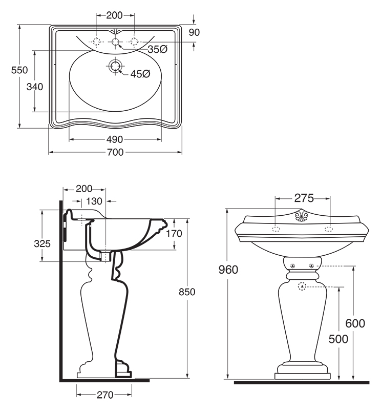 Раковина подвесная 70см Azzurra Jubilaeum JUB200/Mbi*1 белый