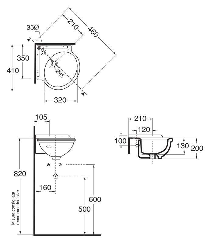 Раковина подвесная 35см Azzurra Jubilaeum JUB35/ANbi*1 белый