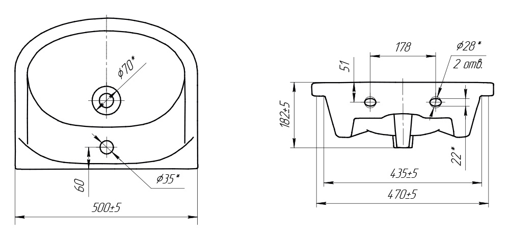 | Отверстия под смеситель | на 1 отверстие |