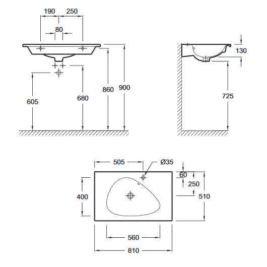 | Отверстия под смеситель | на 1 отверстие |