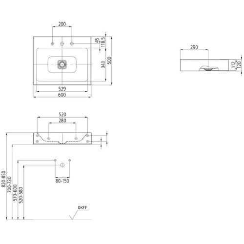 | Отверстия под смеситель | на 1 отверстие |