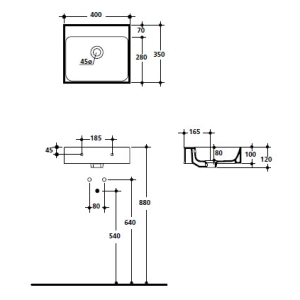 Раковина подвесная 40см Kerasan Cento 353901*0 белый