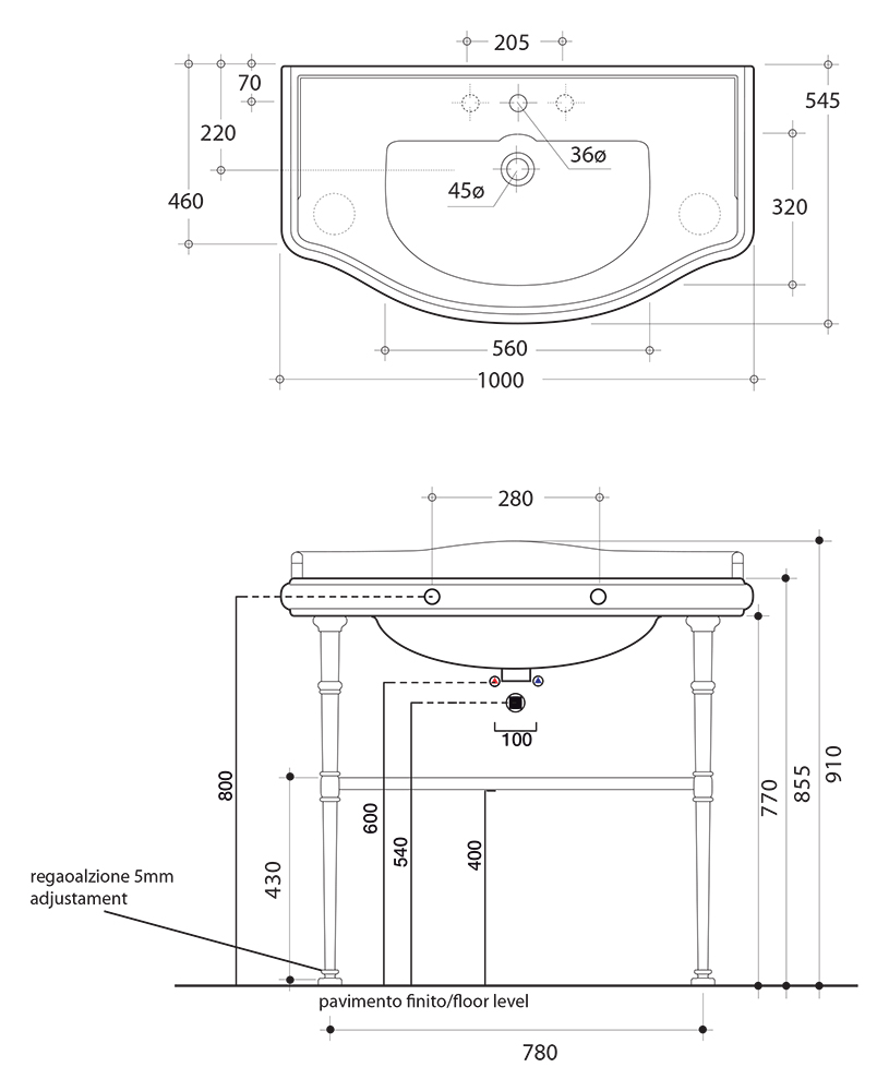 Раковина подвесная 100см Kerasan Retro 105001*1 белый