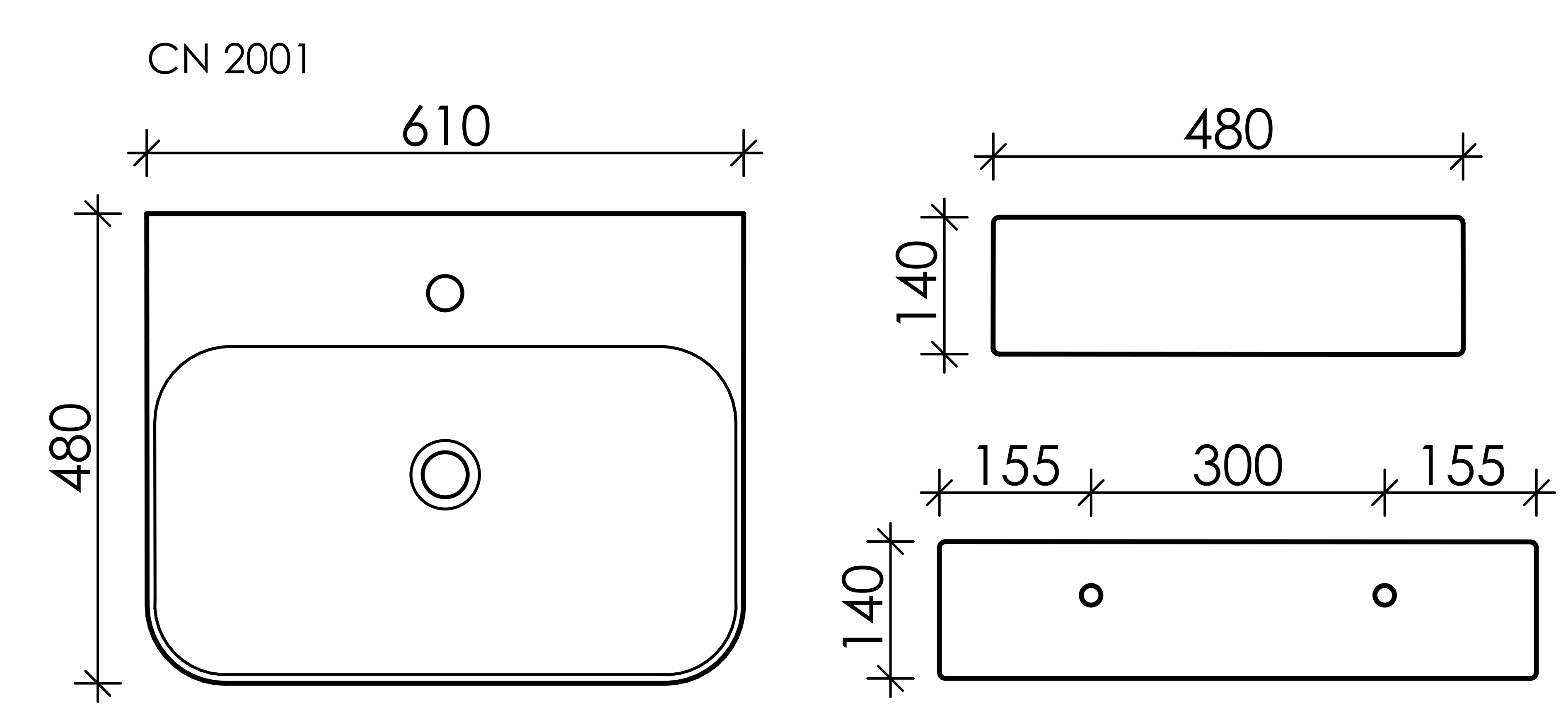 Раковина подвесная 61см Ceramica Nova Aura CN2001 белый