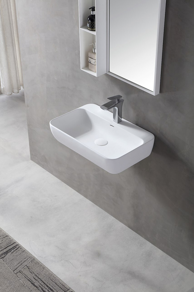 Изготовители подвесных раковин выигрышно сделали акцент на компактность и удобство таких рукомойников. Это нашло отклик среди потребителей, которые все чаще отдают им свое предпочтение перед другими типами умывальников. Раковина подвесная ABBER Stein AS2654 белая матовая - завоевала любовь клиентов в первую очередь благодаря хорошему функционалу и эстетичному дизайну. Изделие серии Stein выполнено из , производится без отверстий под смеситель и обладает четкими, но в то же время приятными линиями. Особой опциональности ему придает форма, расположение смесителя и наличие дополнительного пространства для предметов. Раковина отлично выглядит во всяком интерьере и замечательно сочетается с другими товарами фирмы Abber для создания стильного формата санузла. Инсталляция выполняется обычным способом - к стене и не вызывает абсолютно никаких трудностей. Гарантийный срок на товар составляет 5 лет, страна-производитель - Германия, считается лидером в сфере сантехнического оборудования и каждый год расширяет товарный ряд, пополняя свой и без того солидный ассортимент необычными новинками.