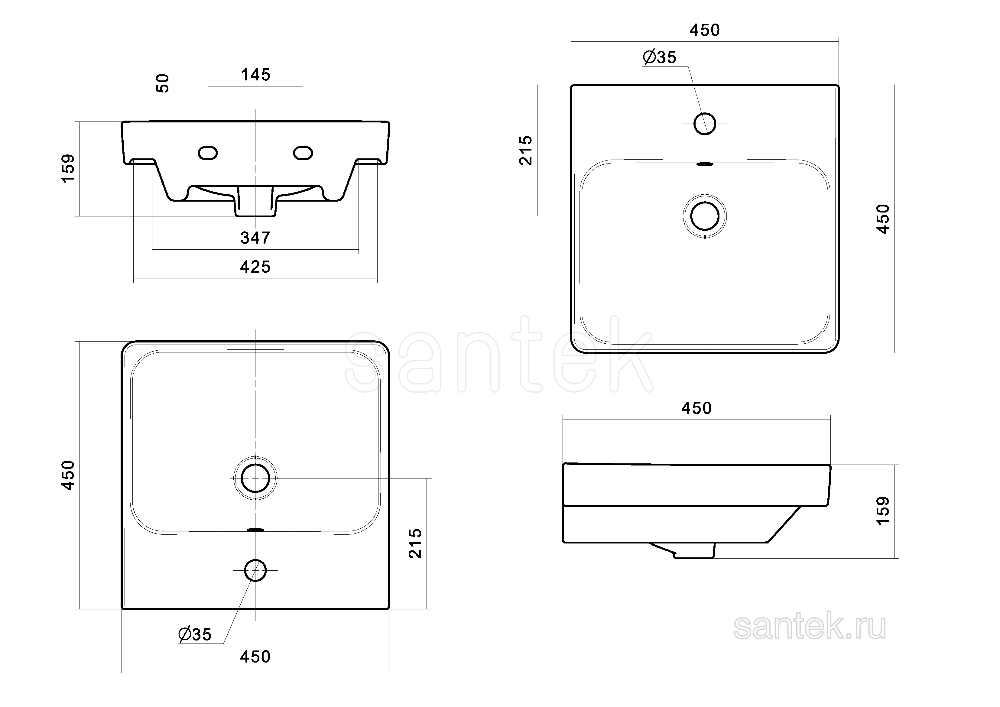 Раковина Santek Адриана 45 отверстие под смеситель 1WH501630