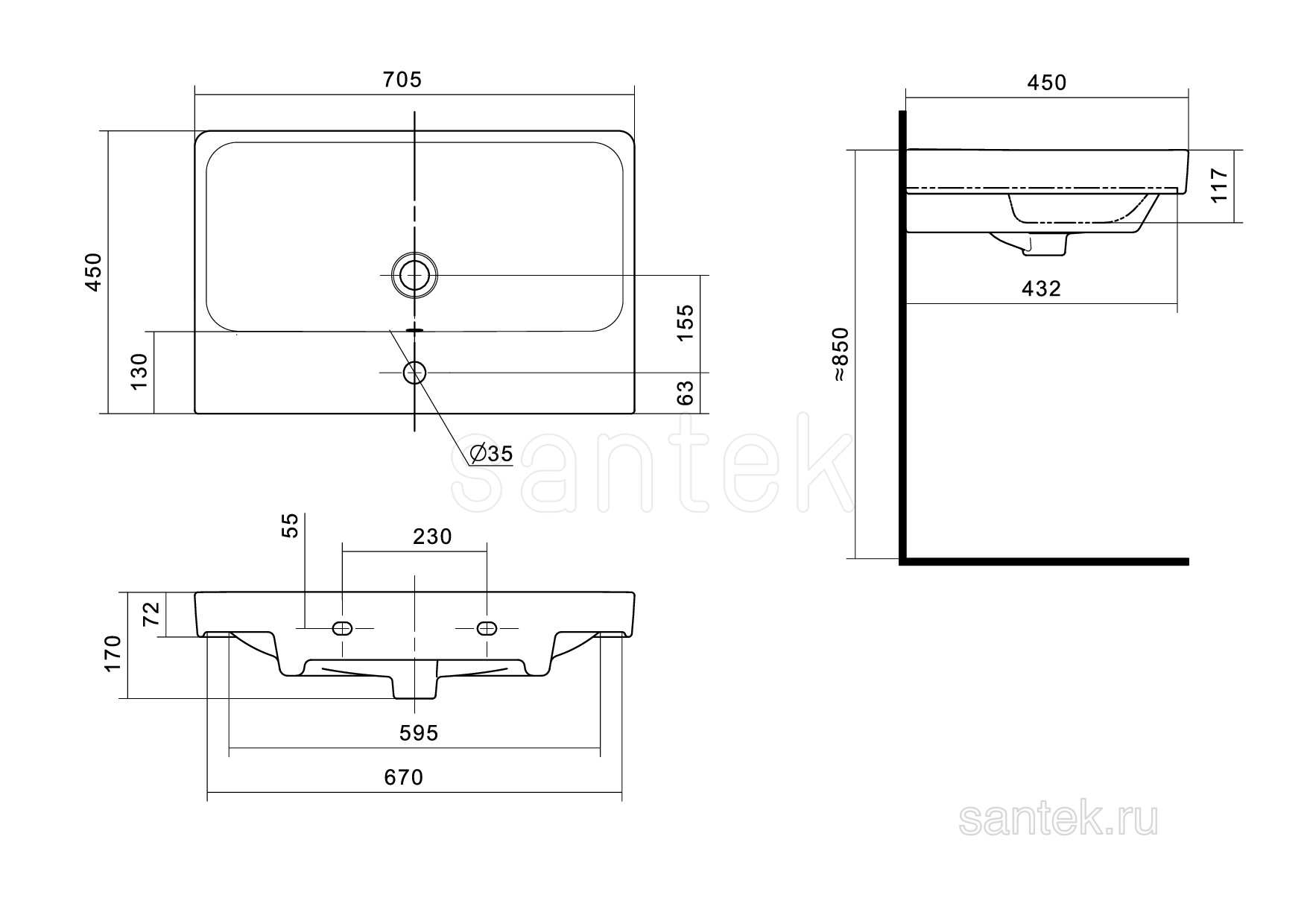 Раковина Santek Адриана 70 отверстие под смеситель 1WH501628