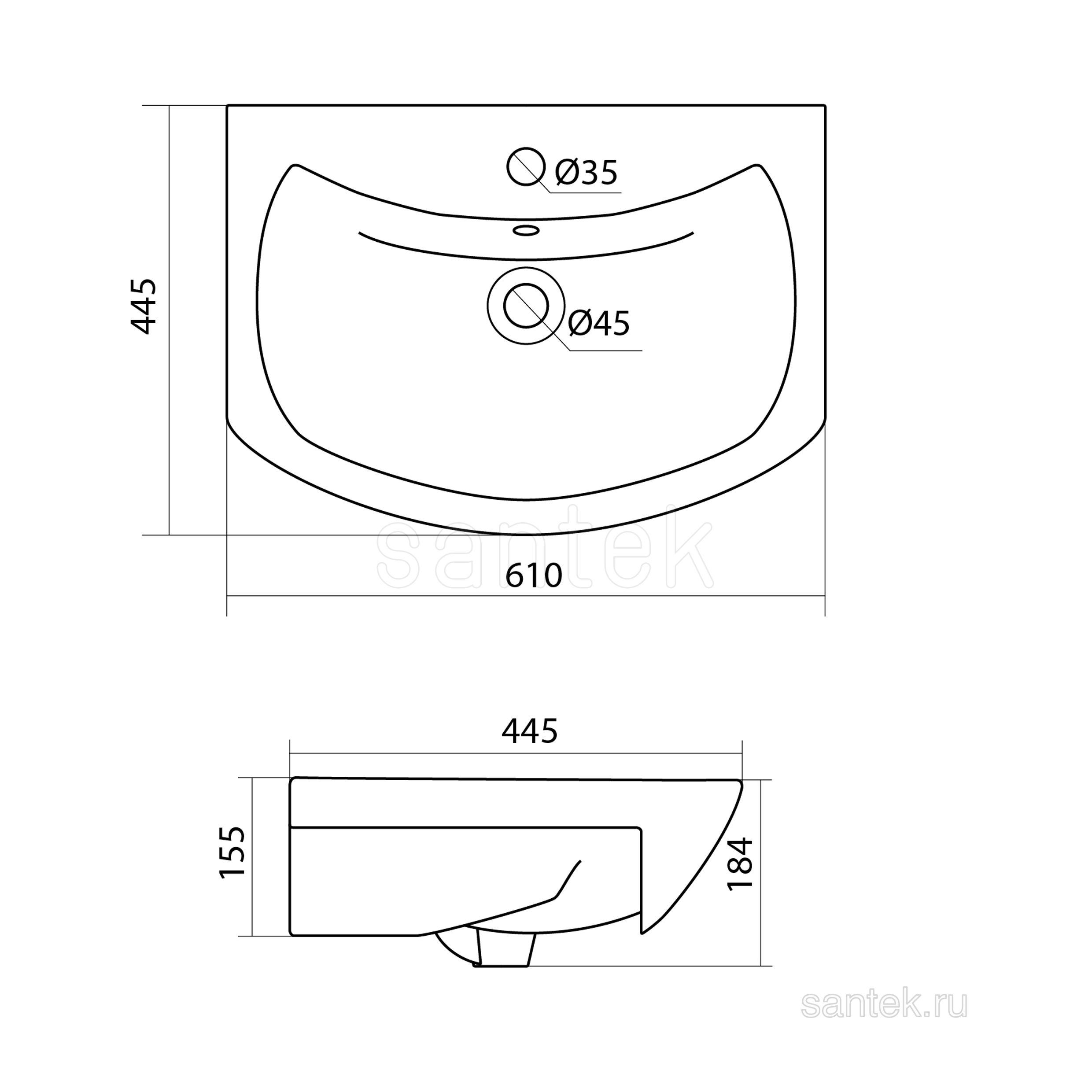 Раковина Santek Балтика 60 отверстие под смеситель 1WH110246