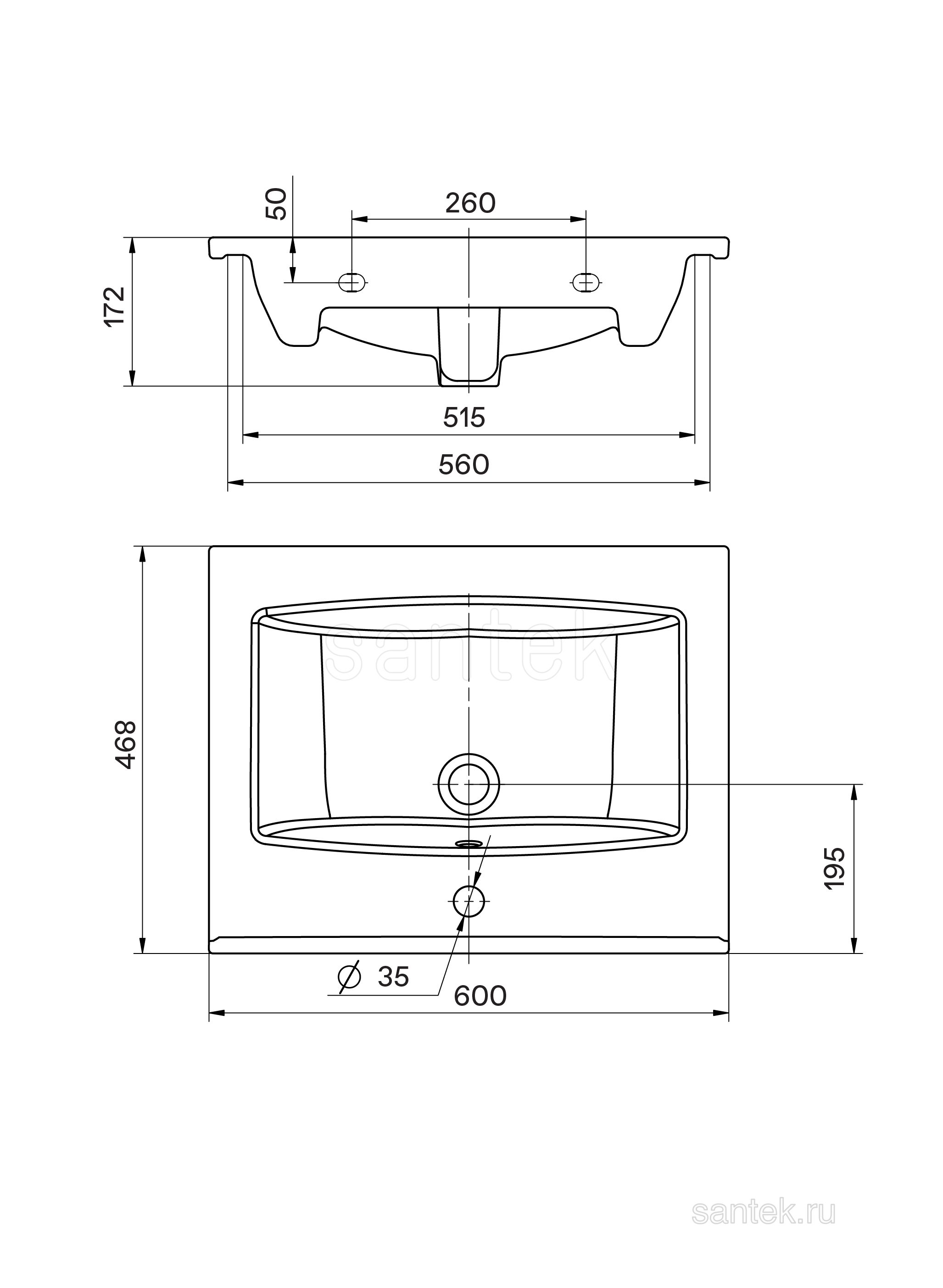 Раковина Santek Элина 60 отверстие под смеситель 1WH501606