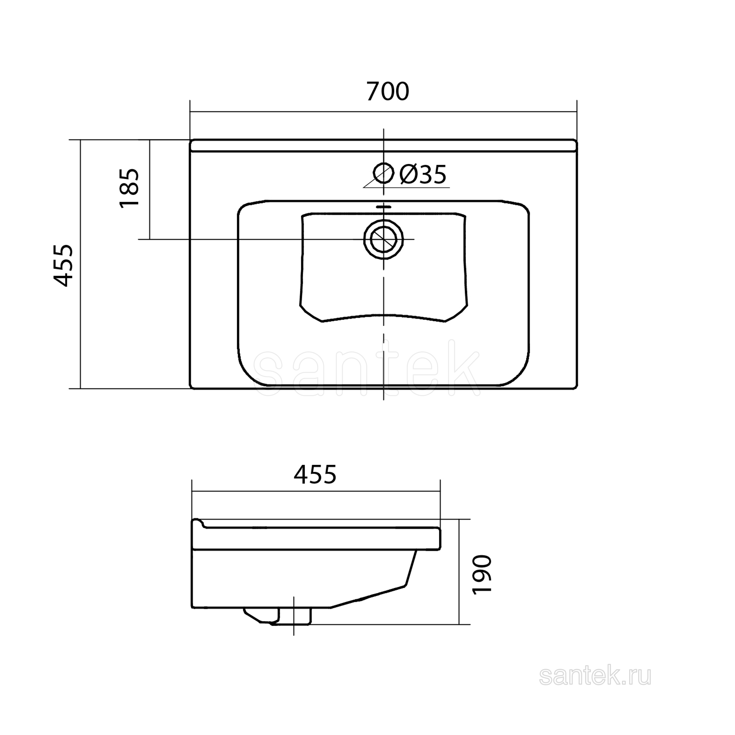 Раковина Santek Миранда 70 отверстие под смеситель 1WH302250