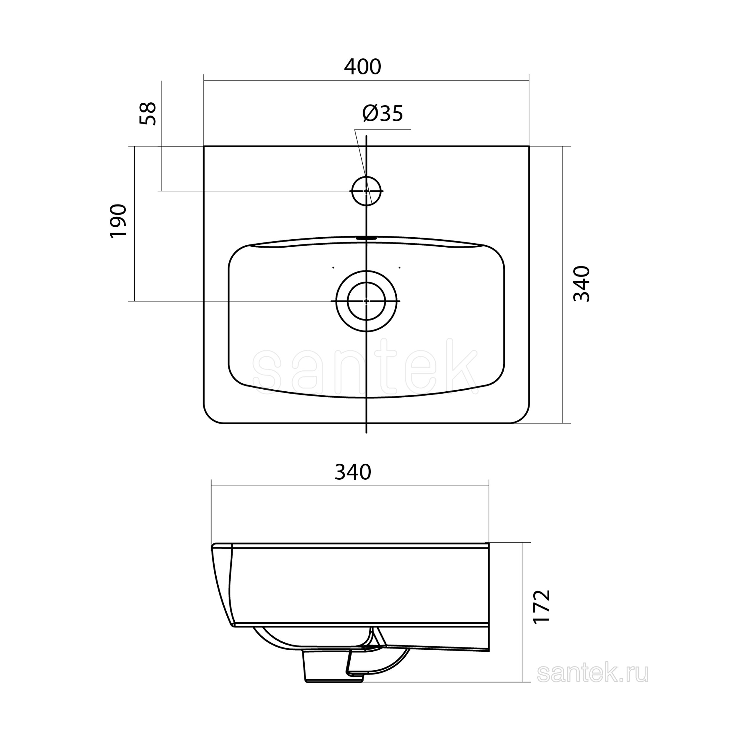 Раковина Santek Нео 40 отверстие под смеситель 1WH302183