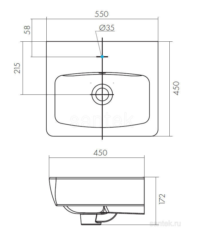 Раковина Santek Нео 55 отверстие под смеситель 1WH302185