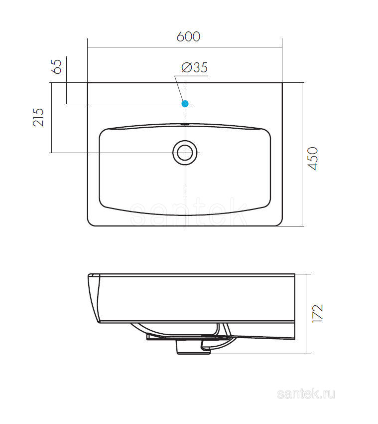 Раковина Santek Нео 60 отверстие под смеситель 1WH302186