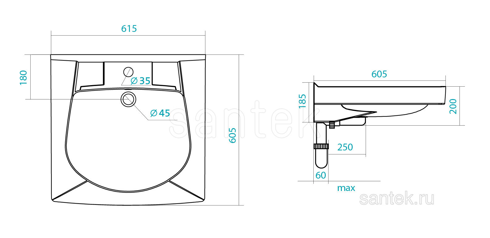 Раковина Santek Пилот 60 отверстие под смеситель 1WH110572