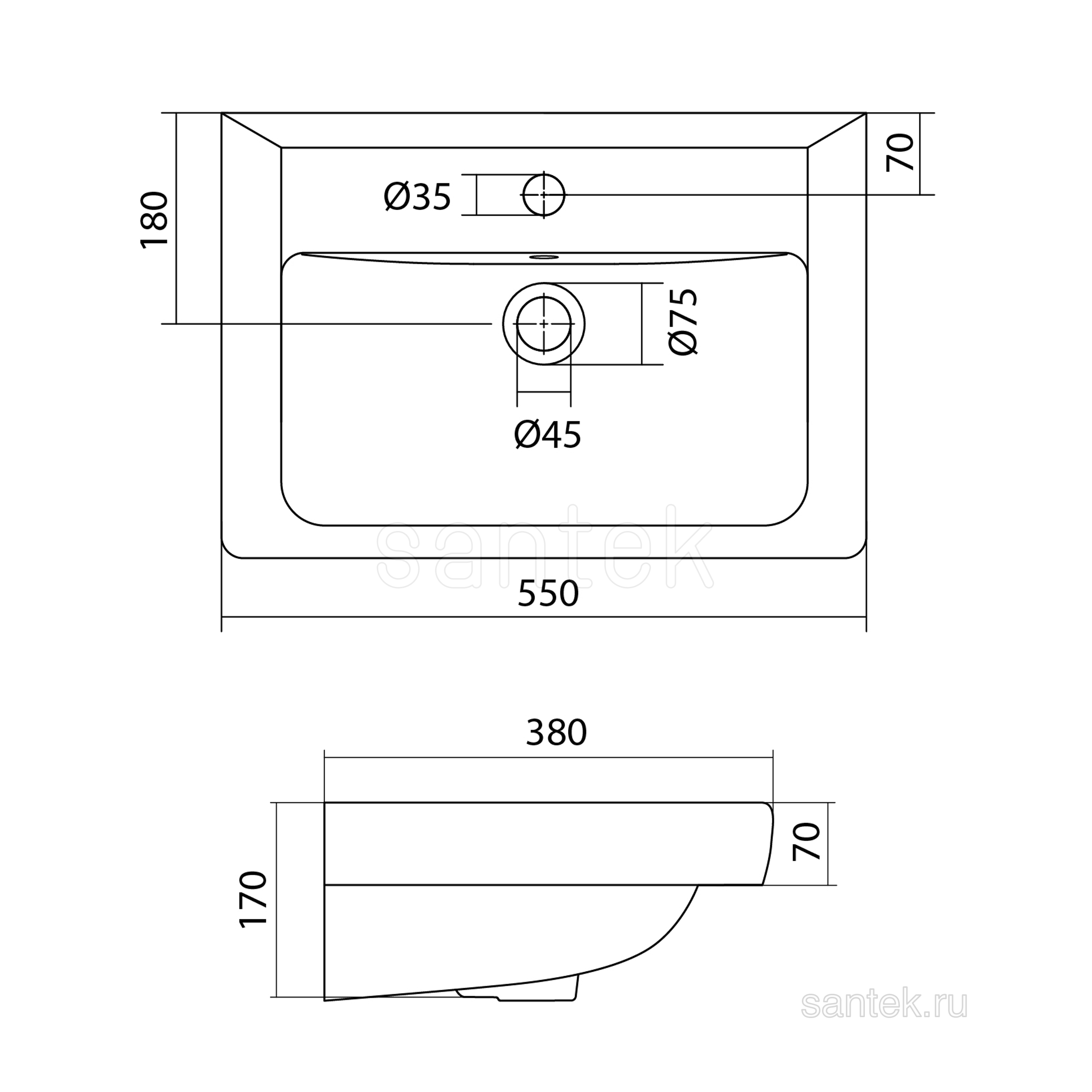 Раковина Santek Тигода 55 отверстие под смеситель 1WH302127 мини