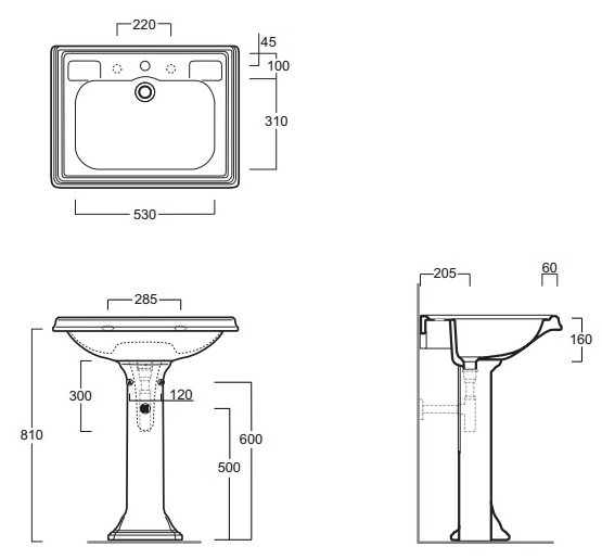 | Отверстия под смеситель | на 1 отверстие / на 3 отверстия |