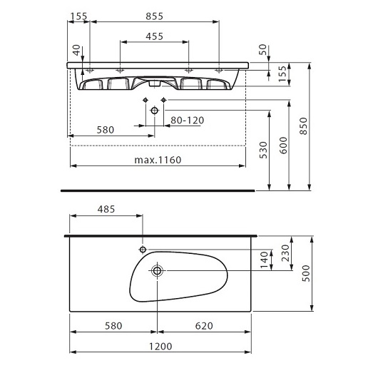 Раковина единая со столешницей - необычный тип сантехники и отличная замена классическим моделям. Такие неделимые конструкции просты в размещении, солидны и функциональны. Раковина Laufen Palomba 1480.6.000.104.1 - нестандартное и модное дизайнерское решение, которое позволит оптимизировать интерьер ванной комнаты. Сверхпрочный и обладающий устойчивостью к механическим повреждениям материал чаши - керамика, не создает никаких проблем в поддержании гигиеничности. Товар производителя Laufen располагает гарантией 5 лет и разработан в Швейцарии. Модель выполнена в современном стиле, обладает правильными линиями, а параметры (высота 15.5 см, ширина 120 см., глубина 50 см.) делают возможной установку в санузлах с практически любым метражом. Данный экземпляр - самодостаточная конструкция, которая не нуждается в докупке дополнительной мебели, но если будет нужно может быть установлена на тумбу. Модель коллекции Palomba имеет просторную поверхность для ванных вещей и непревзойденно справляется со своими задачами.