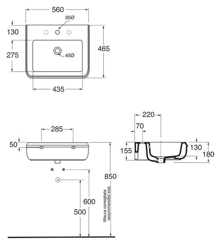 Раковина полувстраиваемая 56см Azzurra Charme CHA255bi*1 белый