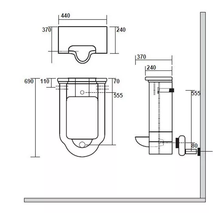 Писсуар подвесной Kerasan Waldorf 4130 белый, скрытый подвод воды