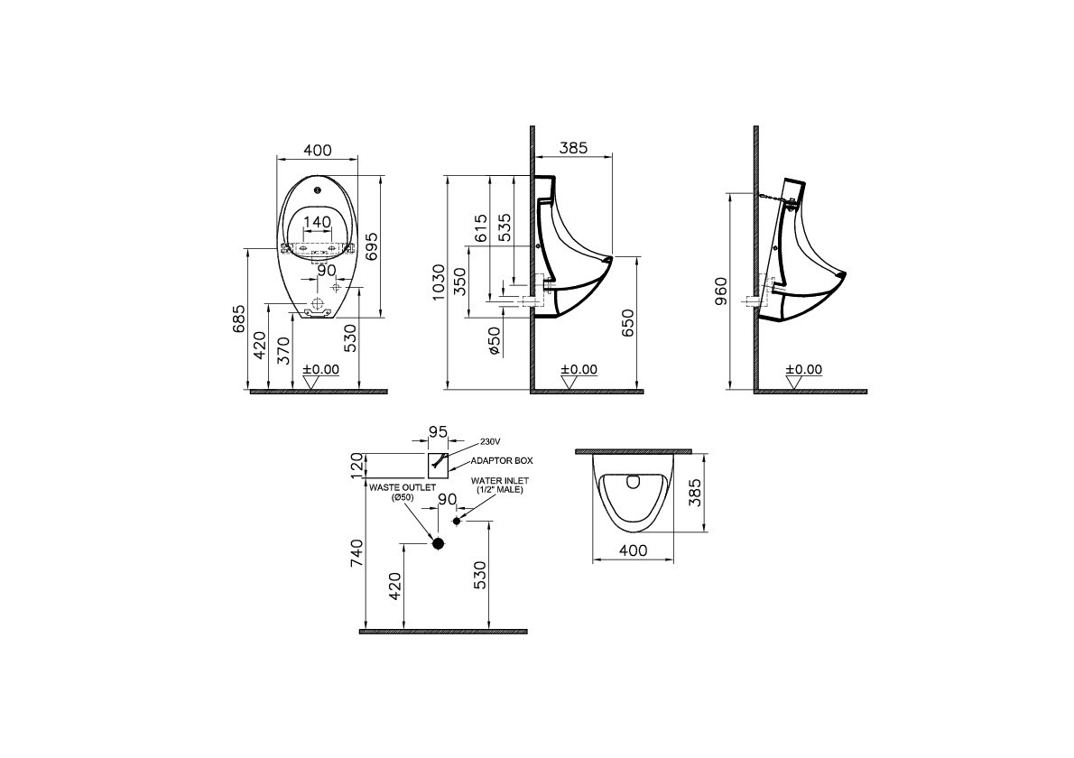 Писсуар подвесной VitrA Arkitekt 4106B003-5291 белый, скрытый подвод воды