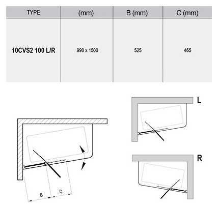 Шторка для ванны Ravak 10° 10CVS2 100x150 профиль полированный алюминий, стекло прозрачное, левая