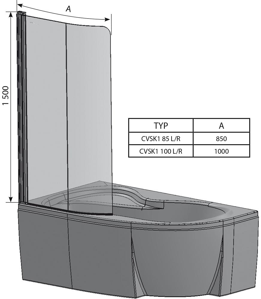 Шторка для ванны Ravak Chrome CVSK1 Rosa 140/150 L белая+транспарент