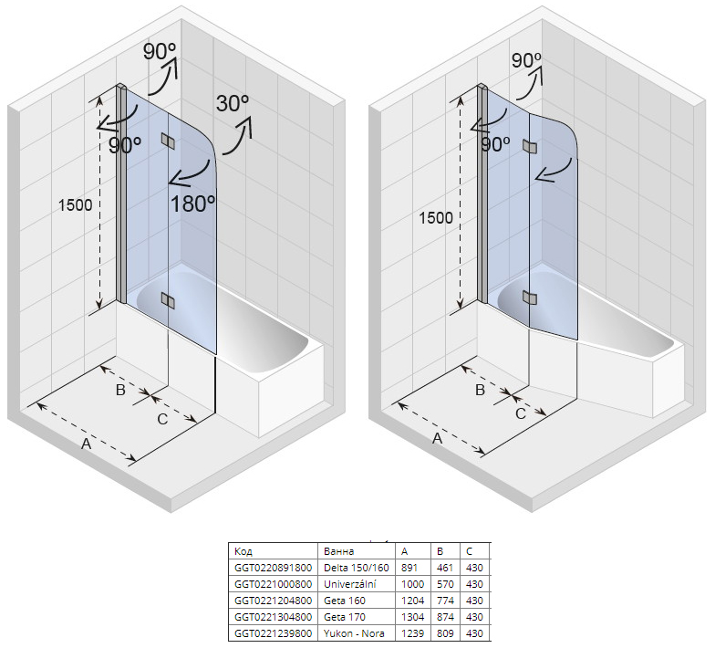 Шторка для ванны Riho Nautic 3000 N500 Yukon Nora 124x150 Хром