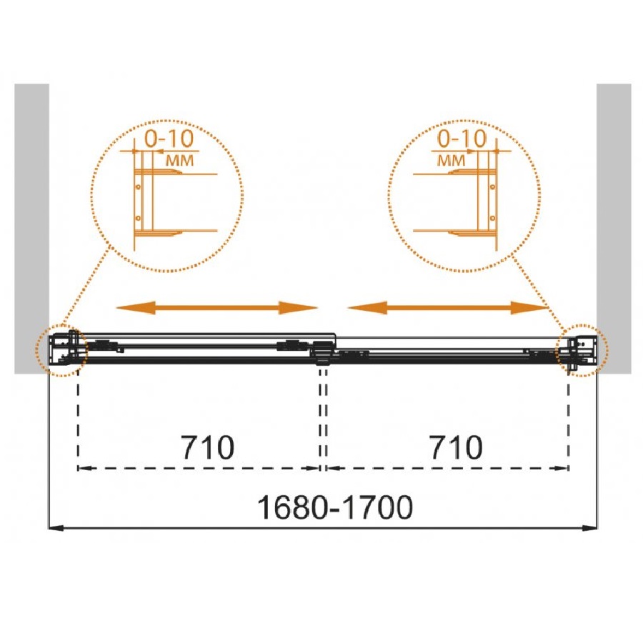 Шторка на ванну Cezares Tandem Soft VF-2 170х145 профиль Хром стекло прозрачное