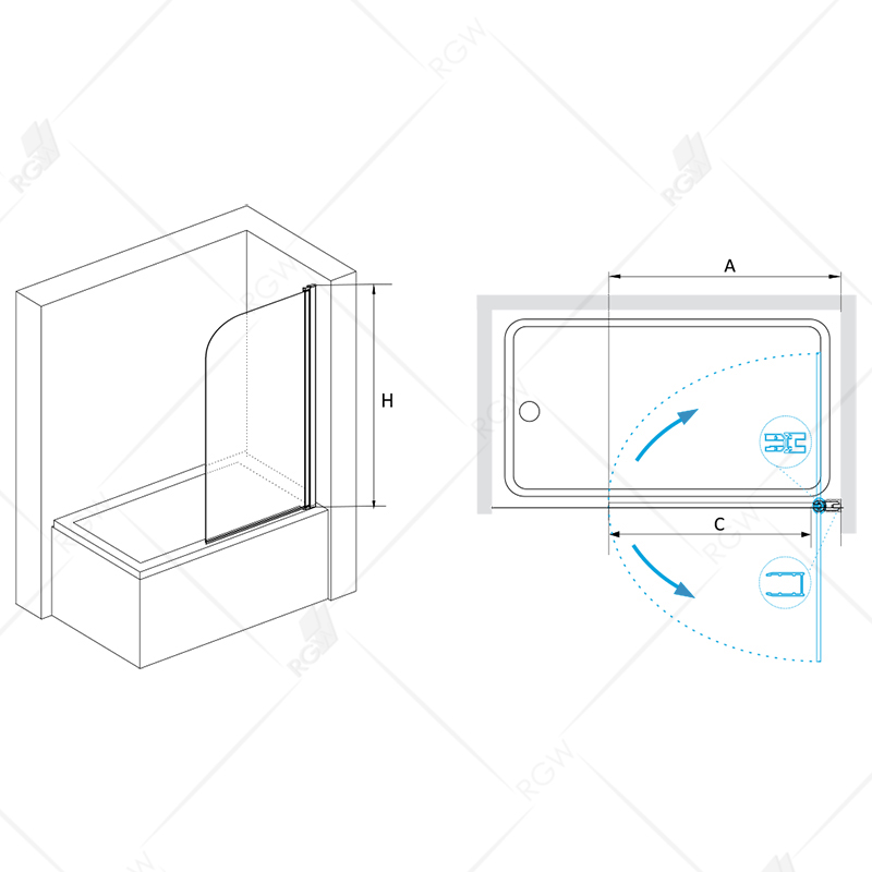 Шторка на ванну RGW Screens SC-09 В 80x150 профиль Черный стекло прозрачное