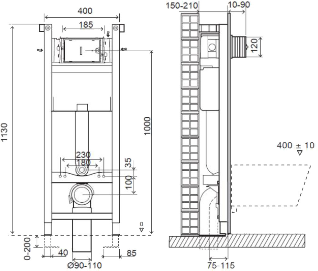 | Назначение инсталляции | для подвесных унитазов |