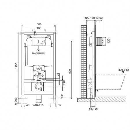 Инсталляция для подвесных унитазов OLI 74 601801 - современная и добротная конструкция, изготовлена из премиум материалов. Модель имеет продуманные параметры: ширина 58 см., глубина 17 см. и высота 115 см. Подвод воды реализован к инсталляции, монтировать раму можно за основной или ГКЛ стеной, промежуток под крепеж шпильки 18, 23 см. Эта разработка даст возможность полность задействовать площадь ванной комнаты и сделает каждый дизайн лаконичным, без лишних комплектующих. Особая разработка производителя OLI дает возможность выгодно сократить расход воды, сохраняя при этом абсолютную гигиеничность. Управление смывом механическое. Герметизация смывного бачка гарантирует продолжительный срок службы и застрахует от возникновения конденсата и плесени. Дополнительным достоинством изделия серии OLI 74 является полная гарантия 10 лет. Страна производства - Португалия, давно славится своими сантехническими разработками во всем мире.