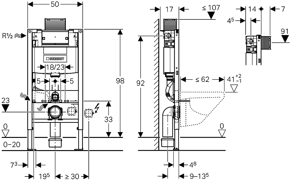 Инсталляция для подвесных унитазов Geberit Omega 12 111.030.00.1 - популярная и качественная конструкция, выполнена из высокопрочных материалов. Модель имеет оптимальные параметры: ширина 50 см., глубина 17 см. и высота 98 см. Подвод воды осуществляется сверху или сзади к инсталляции, монтировать раму получится за основной или гипсокартонной стеной, расстояние под крепеж шпильки 18, 23 см. Эта разработка разрешит полность использовать площадь ванной комнаты и сделает каждый дизайн гармоничным, без громоздких деталей. Особая разработка бренда Geberit дает возможность в значительной степени сократить расход воды, сберегая при этом совершенную гигиеничность. Управление смывом механическое. Гидронепроницаемость сливного бачка гарантирует продолжительный срок эксплуатации и защитит от образования конденсата и грибка. Отдельным плюсом изделия серии Omega 12 является гарантия 10 лет. Страна изготовления - Швейцария, заслужено славится своей сантехнической продукцией во всем мире.