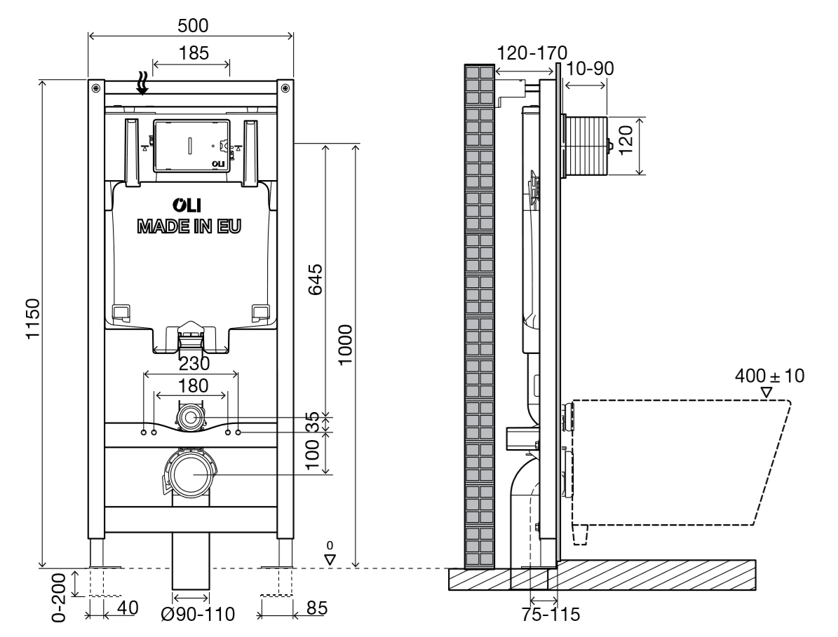 Готовое решение для подвесных унитазов OLI 80 300572mSl00 клавиша хром глянцевый