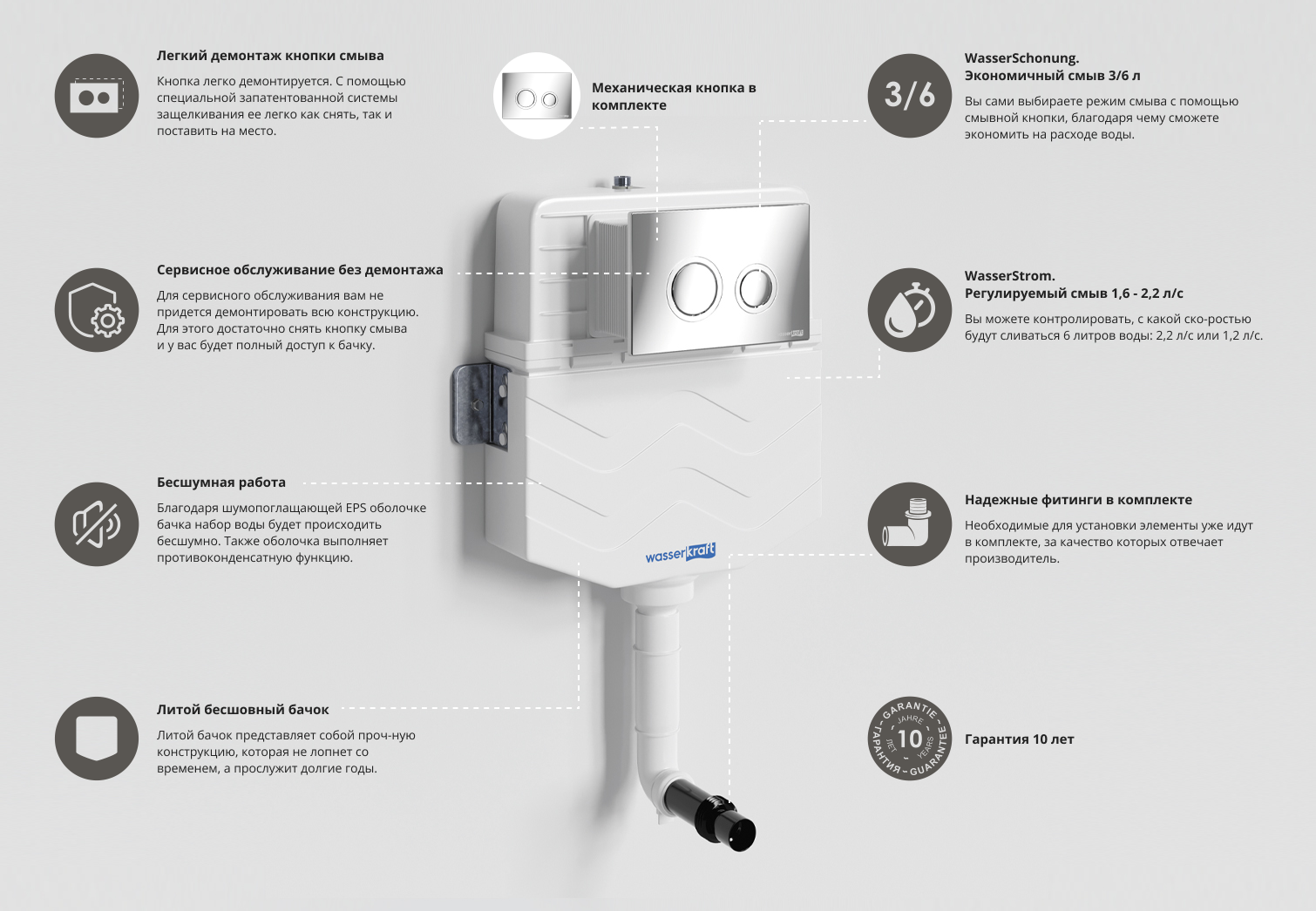 Готовое решение для приставных унитазов WasserKraft Aller 10 10TLT.031.ME.CH панель смыва хром