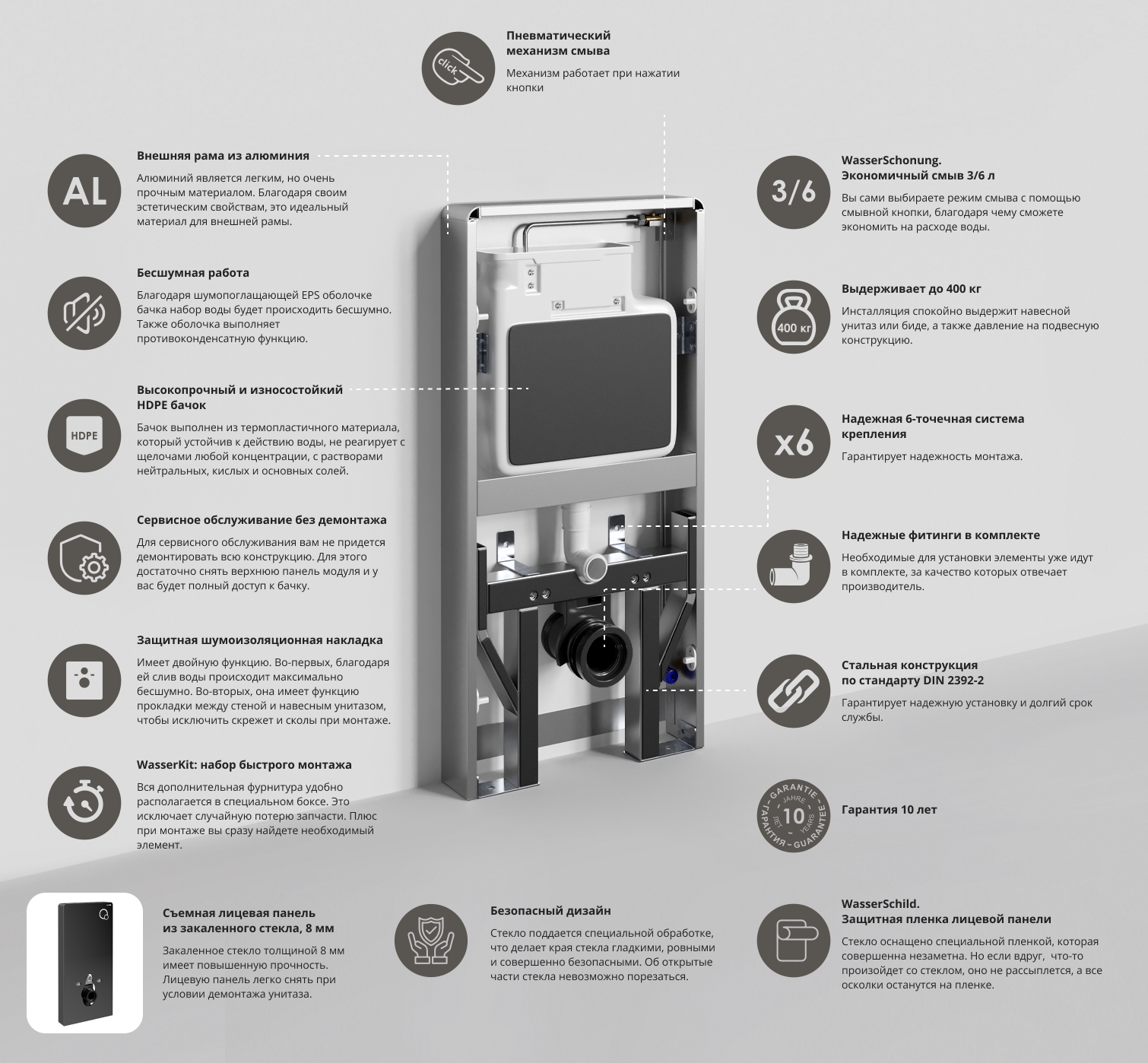 | Назначение инсталляции | для подвесных унитазов |