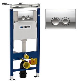 Готовое решение для подвесных унитазов Geberit Duofix UP100 458.122.21.1 хром глянцевый - полный комплект для санузла. Данная разработка позволит оптимально обустроить пространство. Комплектация набора включает все нужные детали для монтажа. Конструкция сделана из прочных материалов и характеризуется безупречным качеством сборки. Модель предусмотрена для подвесных унитазов и имеет подключение водоснабжения сверху или сзади к инсталляции. Материал кнопки смыва - пластик, цвет блока смыва - хром глянцевый, такое решение будет прекрасно выглядеть во всяком интерьере. Производится конструкция в Швейцарии и имеет гарантийный период 10 лет, что обеспечивает долговечность и удобство в эксплуатации. Этот комплект изготавливается из первоклассной стали, отлично подойдет для длительной эксплуатации. Бренд Geberit чудесно зарекомендовал себя в нише сантехники, а товары серии Duofix UP100 отличаются особой надежностью и доступной стоимостью, что необходимо принимать в расчет при выборе сантехнического оборудования.