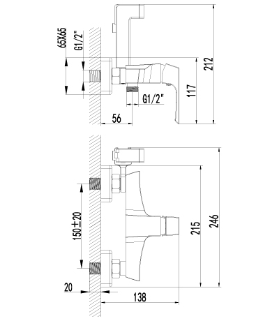 | Монтаж смесителя | на стену |