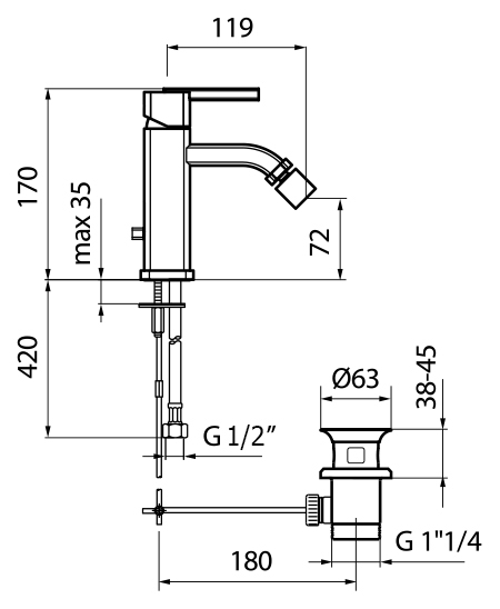 Смеситель для биде Webert Azeta AZ840102 Хром