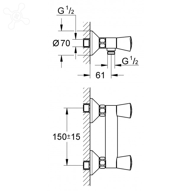 | Монтаж смесителя | на стену |