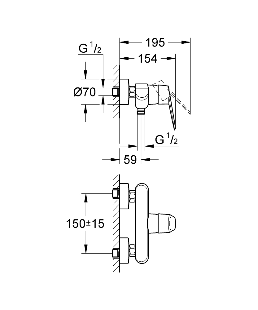 | Монтаж смесителя | на стену |