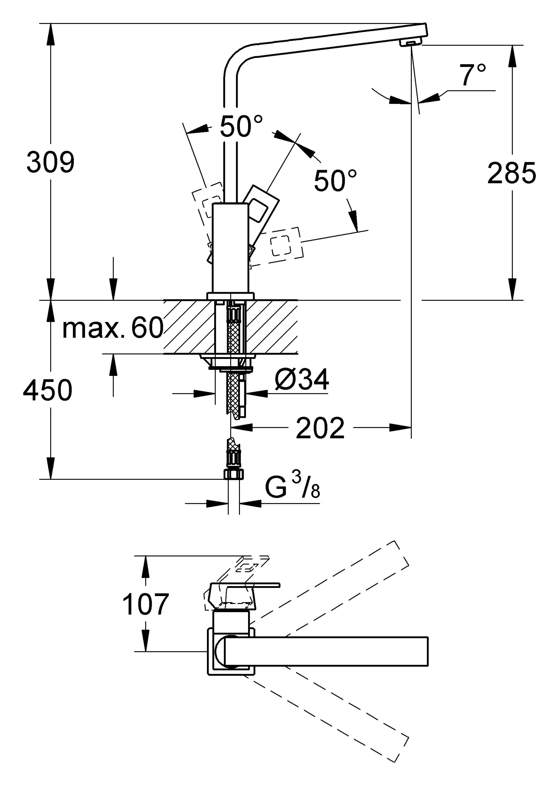 | Монтаж смесителя | на столешницу / на мойку |